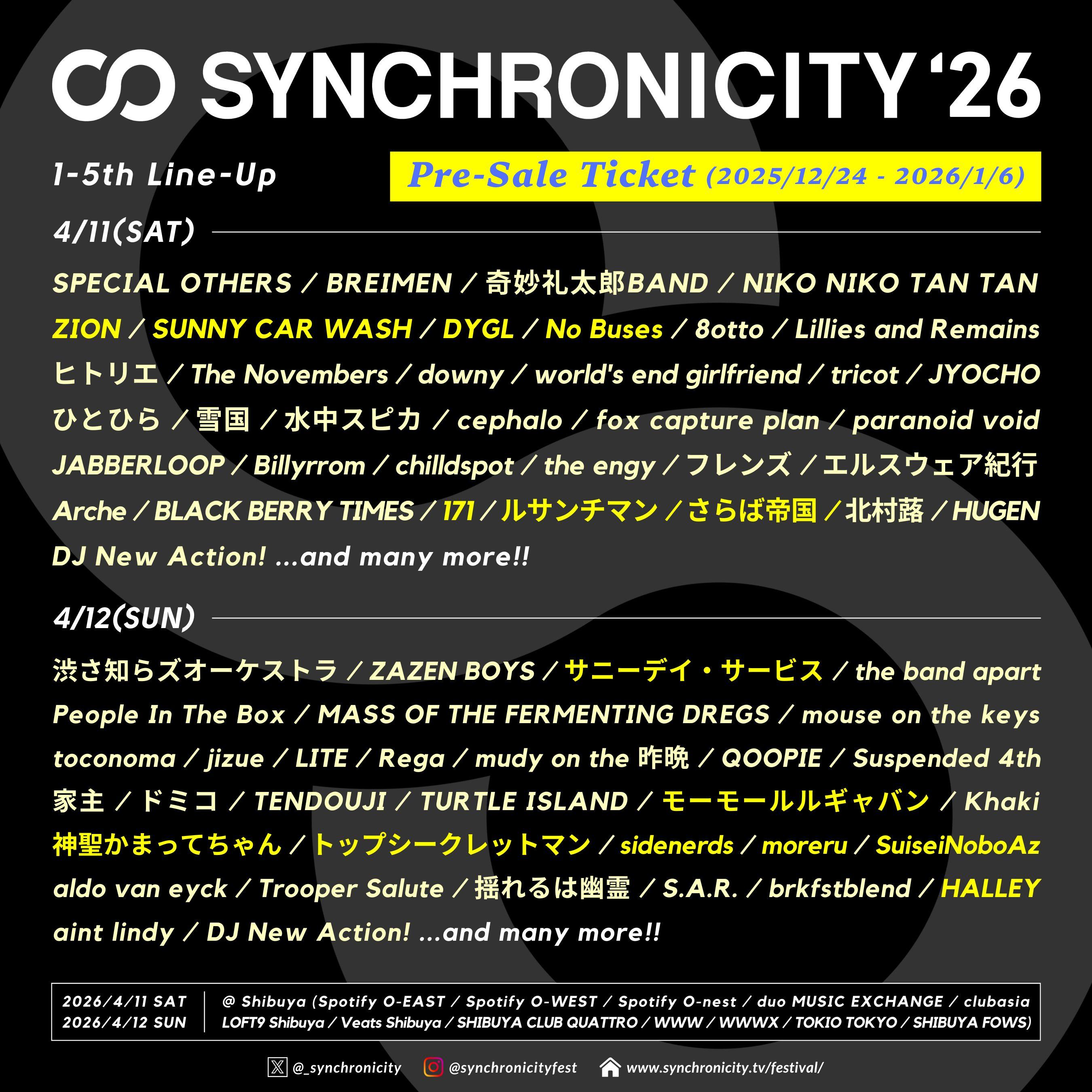 2026年4月11日(土)・4月12日(日) 開催の「SYNCHRONICITY’26」 出演決定